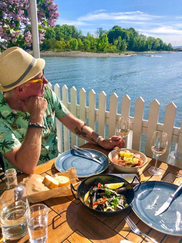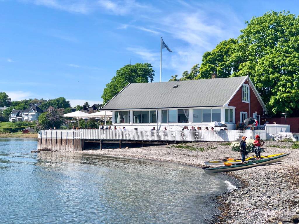 Lille Herbern er for oss fremdeles en stor opplevelse selv etter alle disse årene. Restauranten ligger på en liten øy på Bygdøy. En liten båt (35 kr per pers t/r) tar deg over til øya på et minutt og så er det bare å krysse fingre for at ikke det er mange som allerede har skrevet seg på ventelisten. Ja, for du kan ikke reserverer bord. Du må belage deg på kø og klok av skade anbefales det å ta med en kjølebag med noe godt å drikke og sette deg i vannkanten og nyte ventetiden. Når de ringer, er bordet klart og da kan du meske deg i sjømat og iskald drikke. I år er kjøkkenet bedre enn noen gang. Sørg for å prøve blåskjellene og løyrom’n.