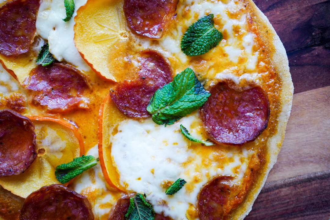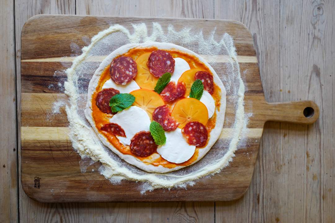 Fruktfest: Pizza med persimon og mynte