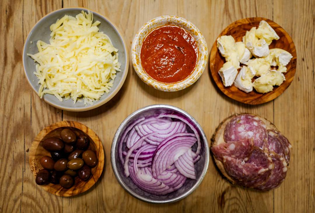 Info: Oppbygging av pizza er den samme for alle pizzaer: