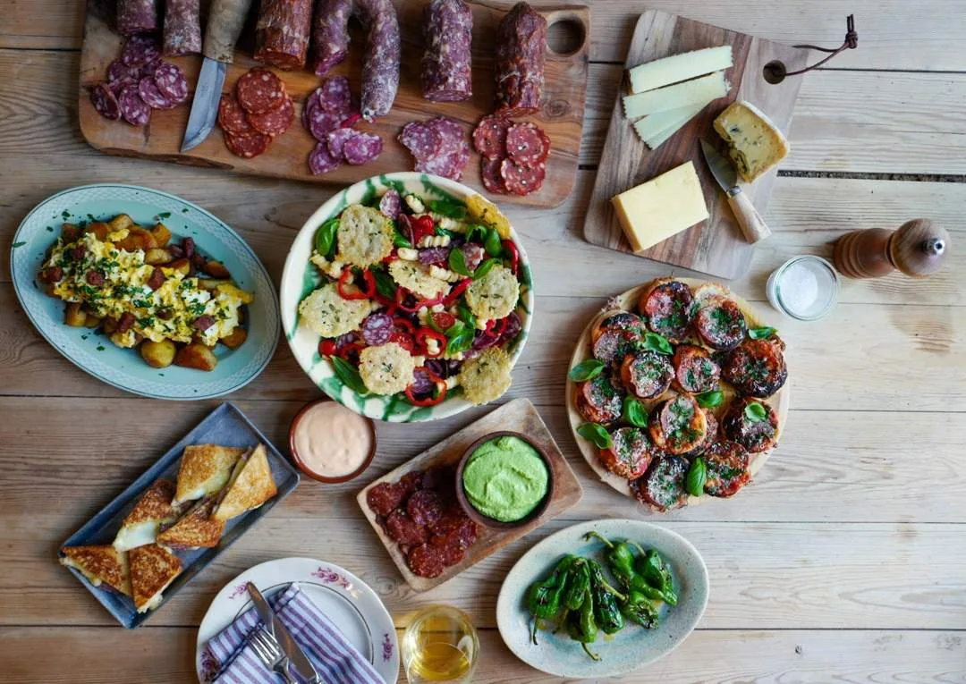 Jeg serverte rettene med et utvalg spekepølser fra Ask Gård, noen gode oster samt pimientos de Padrón og chilimajones.