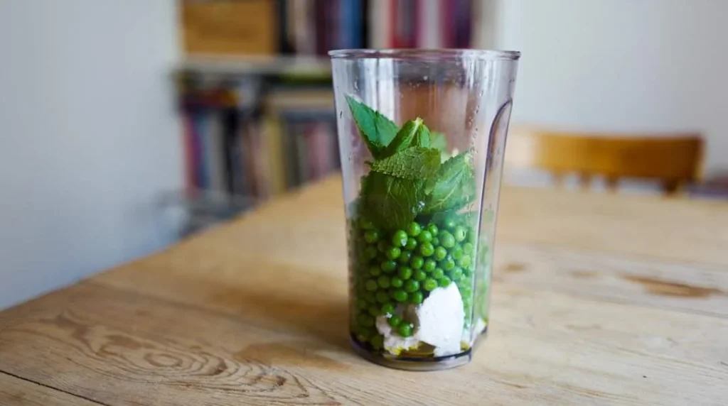 Tin ertene og ha dem over i en beholder. Tilsett de andre ingrediensene til dippen og kjør glatt med en stavmikser eller i en blender. Smak til om det trengs mer salt.