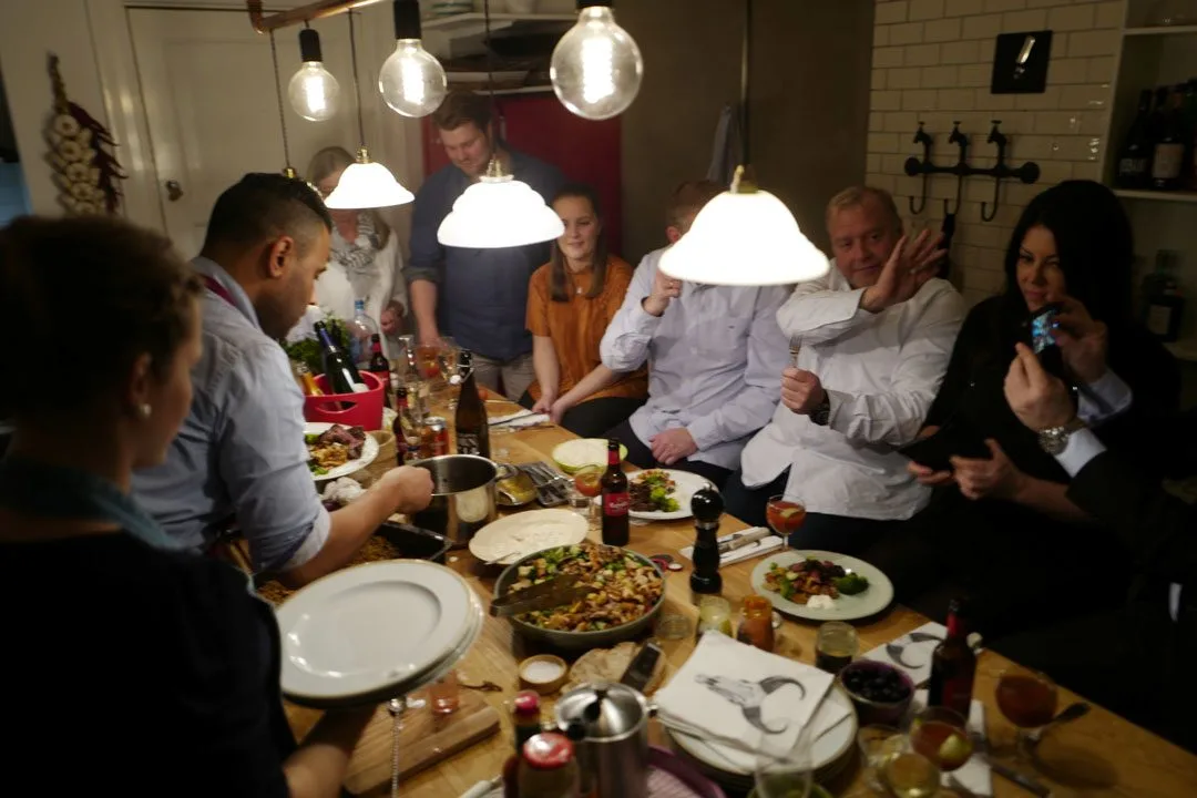 Daniel sto for maten han fikk god hjelp av sin kjæreste Maya. Alle rundt bordet stilte opp med oppvask og rydding underveis, så dette var virkelig en fin gjeng.