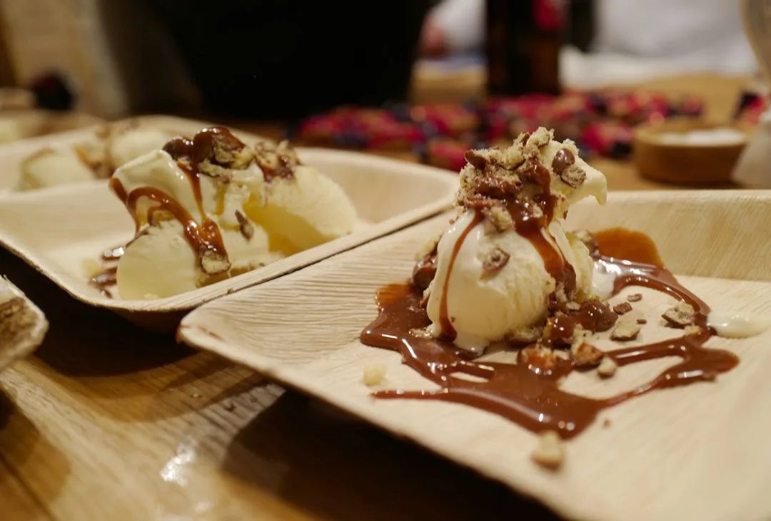 Så har vi kommet til desserten og Daniel har gjort noe så syndig, så syndig. Han har smeltet Dumle i vannbad og laget den beste karamellsasusen som man kan lage på kort tid. Ikke bare det, men den helles over vaniljeis sammen med knuste Kina-maiskrisp. Så ufattelig syndig. Shame on you, Daniel. Her var jeg på kur…