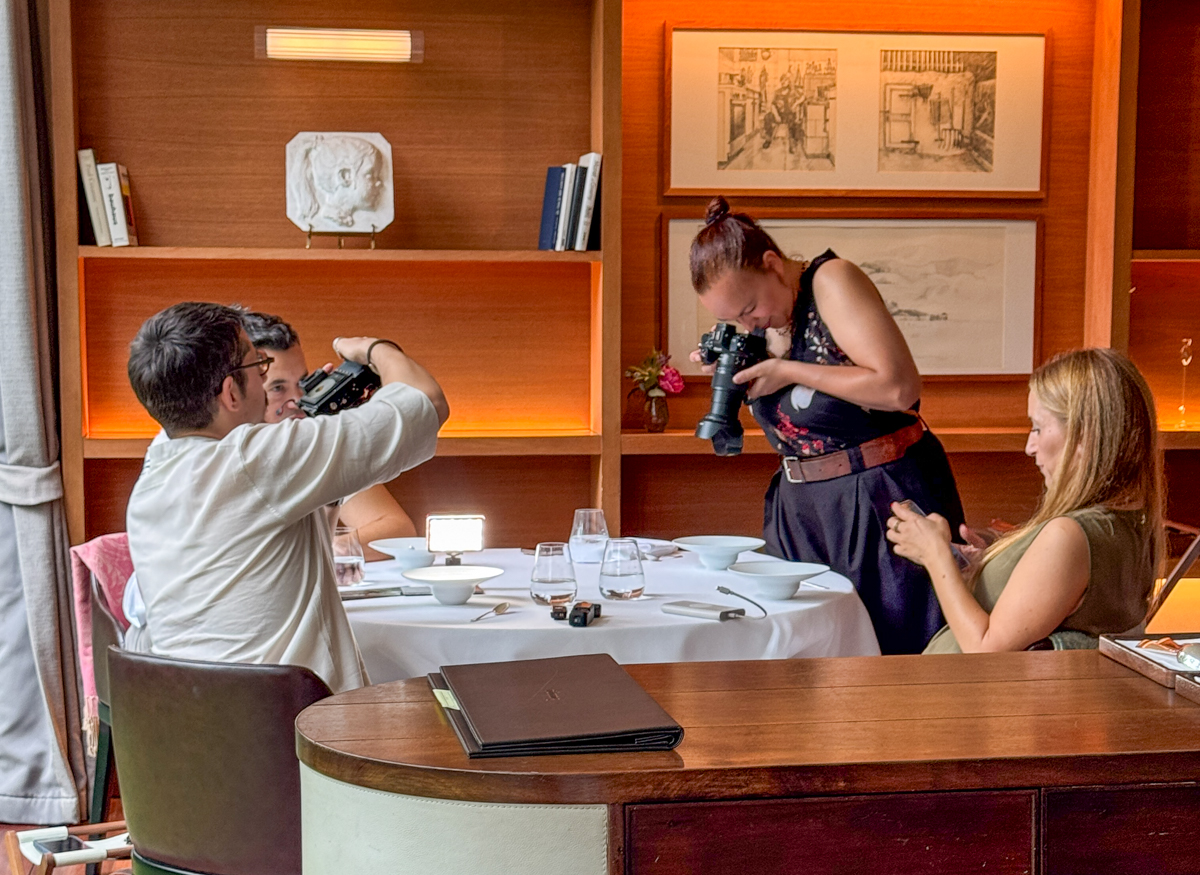 Jeg prøver diskret å ta bilder av rettene og vinene som serveres, like mye for å huske, inspireres og til bruk i diskusjon om opplevelsen i etterkant. Jeg kan garantere at dette forstyrrer noen. Vi er ofte flere, og vi avtaler alltid at bare en (jeg) tar bilder. Som det blir sagt, for oss som har spart i lang tid og betaler for måltidet selv, liker jeg ikke så godt å bli satt under administrasjon. Sorry! Diskusjon er sikkert nødvendig i oppdragelsesøyemed, vi trenger å bli minnet på å vise hensyn, alle sammen 😊