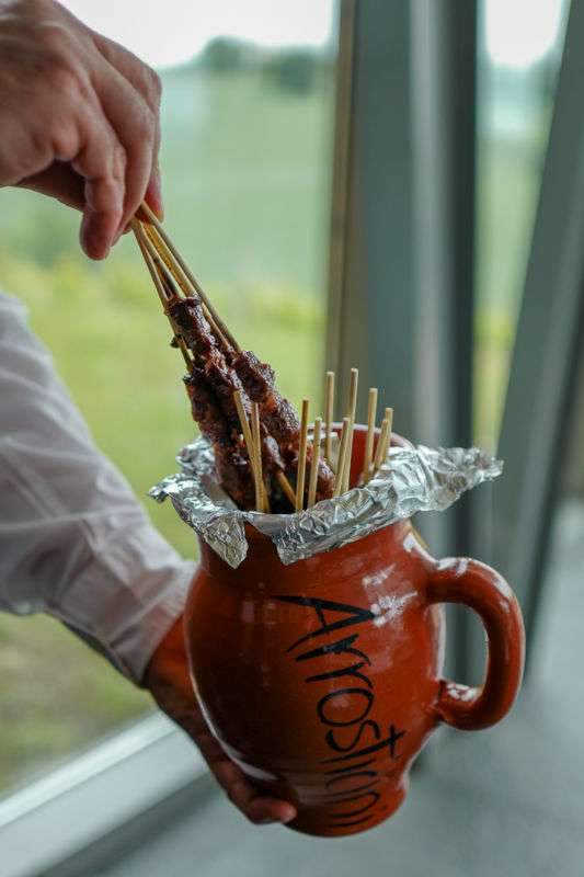 Etter vinmessen var det avslutningsfest på Villa Estea der det ble grillet arrosticini og servert nydelig spekemat og lokale oster. Jeg fikk også smakt ciriole alla chitarra, en pasta laget på salt, egg og durumhvete som er tykkere enn spaghetti. Pastaen presses gjennom det som ligner på gitarstrenger, derav navnet.