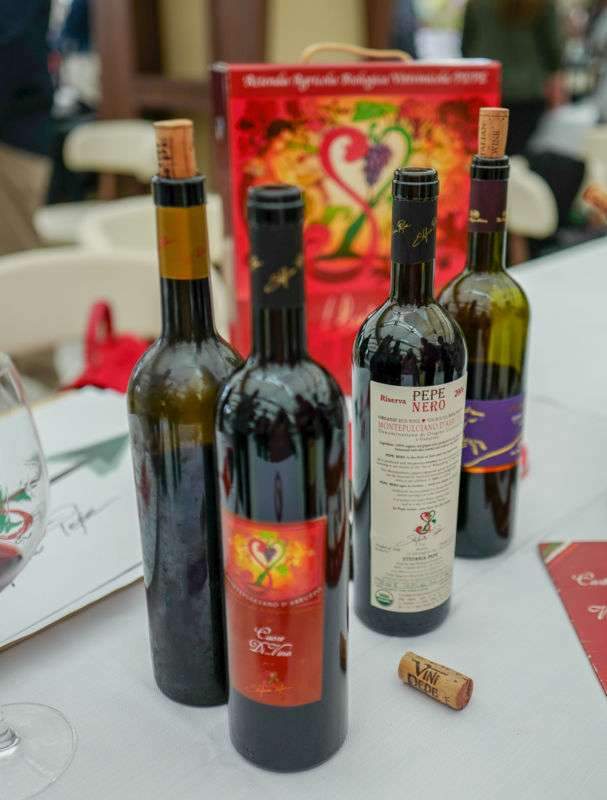 Jeg likte Cerasuoloen deres (altså rosévinen, som vi nå har lært). Vingården drives av hyggelige mennesker, men antrekket til mor og datter får oss til å sperre opp øynene. Hvem går med stilletthæler i vinmarkedene? Bare i Italia! Jeg elsker det!