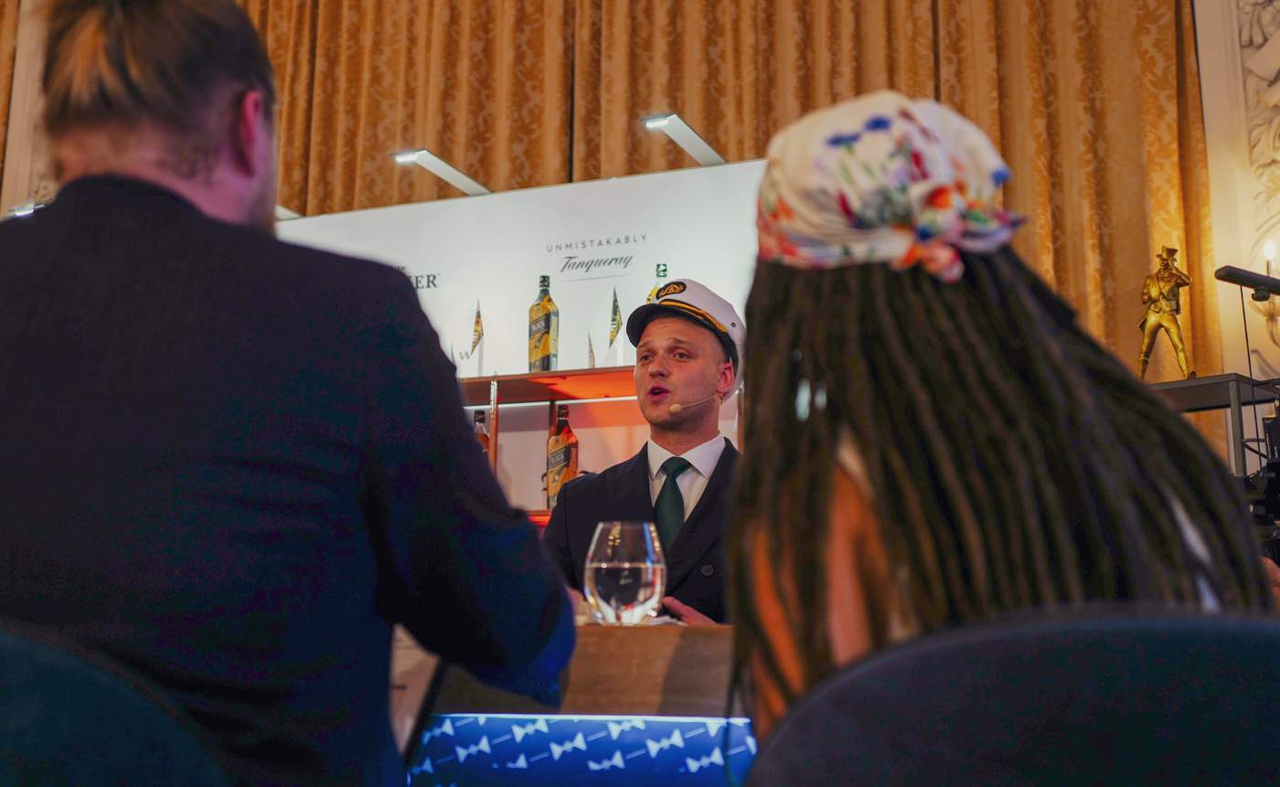 Nå fylles vakre Moltkes Palæ med tilskuere og siste del av konkurransen er i gang. Flaskene med karbonerte drinker skal presenteres for dommerene.