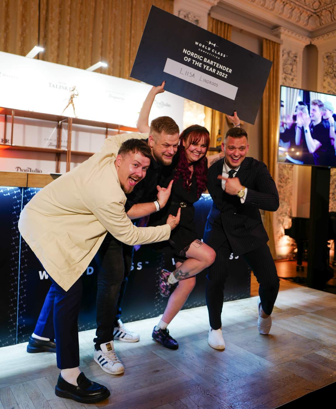 Men vi er ikke ferdige for dagen. Den beste av de fire finalistene (fra hvert av de nordiske landene møtes i en speed challenge «THE SHOWDOWN», der de på 6 minutter må lage seks cocktails som de får vite navnet på rett før de skal på scenen. Det er jaggu kort tid. Dette er en publikumsvennlig og gøyal konkurranse, og det er til slutt Liisa fra Finland som sveiper gulvet med alle gutta. Hun tar tittelen Årets nordiske bartender 2022.Gratulerer!