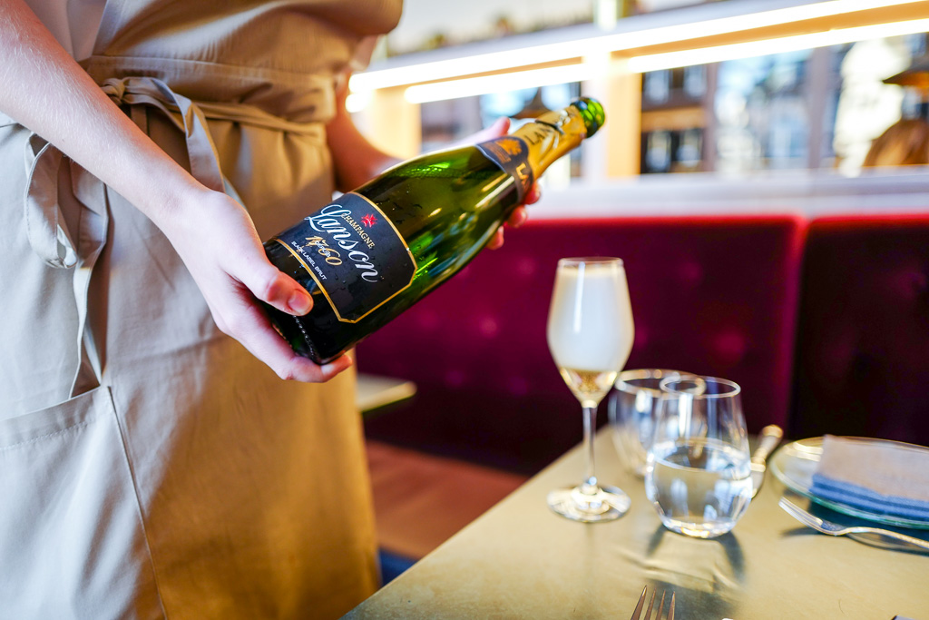 Vi starter med hummersalaten. Det er en nesten skamfull følelse vi får når vi gafler i oss store hummerbiter og skyller det ned med champagne, mens studentene rundt oss svetter over skolebøkene. Har vi fortjent dette? Hell yeah! Det er fredag. En lang arbeidsuke er over. Klart vi har fortjent dette!