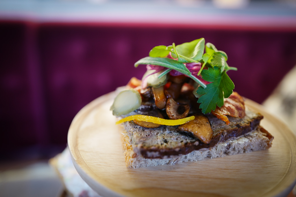 De lekre smørbrødene er hjemmelaget på huset. Selve brødet er fra Handwerk – økologisk surdeigsbakeri i Oslo.