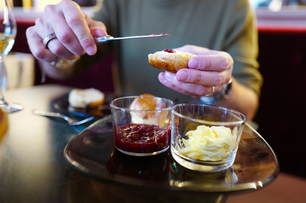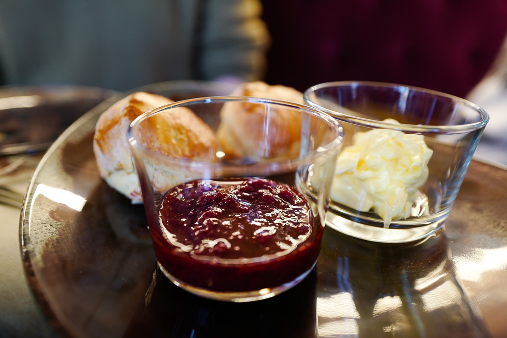 Man kommer ikke utenom scones når man snakker om Afternoon Tea. Jeg har nettopp vært i England og vært med på flere Cream Tea-sermonier. Det er en avart av Afternoon Tea, men der serveres det kun te, scones, syltetøy og clotted cream – ikke smørbrød.