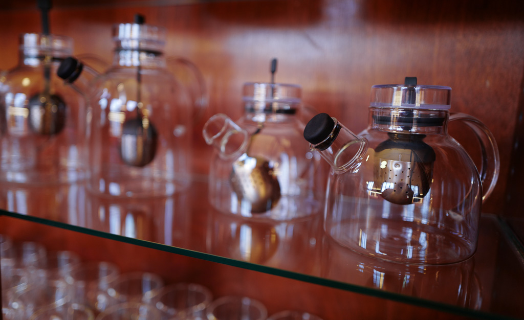 Mye av interiøret hos Å Kafé og Bar er fredet. Barskapet er fredet. Også skapet med det fine teutvalget fra Perchs er fredet. Og det er faktisk mellom 25-30 tesorter du kan velge blant enten du bare er innom for en koppe te eller Afternoon Tea. Hovmester Anna Grahn vet mye om te og guider kundene gjennom den store menyen.