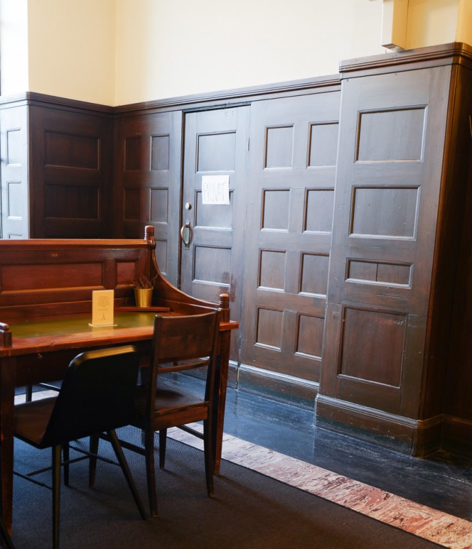 Det er i annen etasje, opp trappen og forbi de flotte veggmaleriene av Axel Revold og Per Krohg, at det skjer. På dagtid er dette kafé der det serveres Afternoon Tea, smørbrød, kaker, te, kaffe og vin og øl. På kvelden serveres cocktails til langt på natt. Det er en ganske spesiell følelse å sitte i et ekte bibliotek med ivrige studenter som sliter seg gjennom pensum.