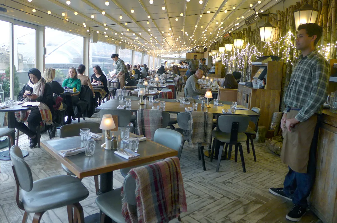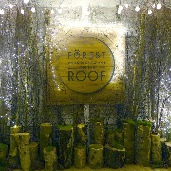 Det er in med popup-restauranter som aldri før i London. Og årets vintertema er definitivt Afterski møter Tyrol. Det finnes mange steder som har åpnet den siste tiden der dette er tema. De serverer gløgg, varme drinker, kule julecocktails og det er gjøkur, pledd og tømmer som former interiøret. Jeg og Erik besøkte et slikt sted forrige uke. Forest on the Roof ligger på taket av det kjente motemagasinet Selfridges. Det er samme folkene som sto bak popup-restauranten Q on the roof, som jeg besøkte i fjor sommer.