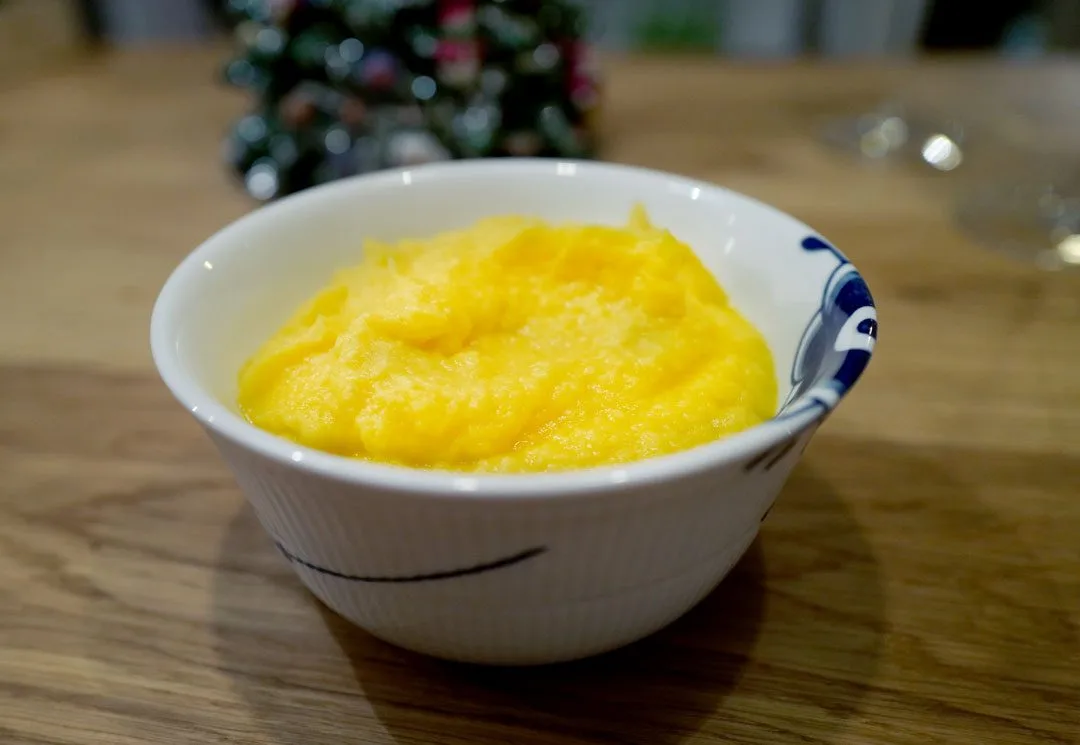 Kålrotpuréen laget jeg litt annerledes i år. Jeg kokte 1 lite kålrabihode (i store biter) sammen med 2 gulrøtter i store biter. Jeg kokte dem i saltet vann til de var møre. Så kjørte jeg grønnsakene i blender med litt av kokvannet til purén var glatt. Også her tilsatt jeg bittelitt brunet smør for å brekke bitterheten i kålroten. Det ble en puré det kan skrives bøker om, altså! Så himla godt.
