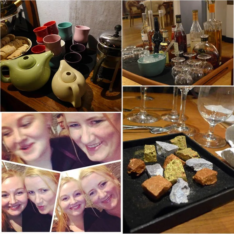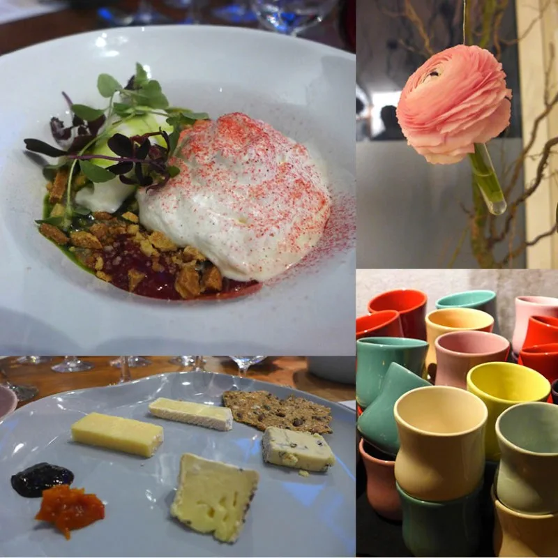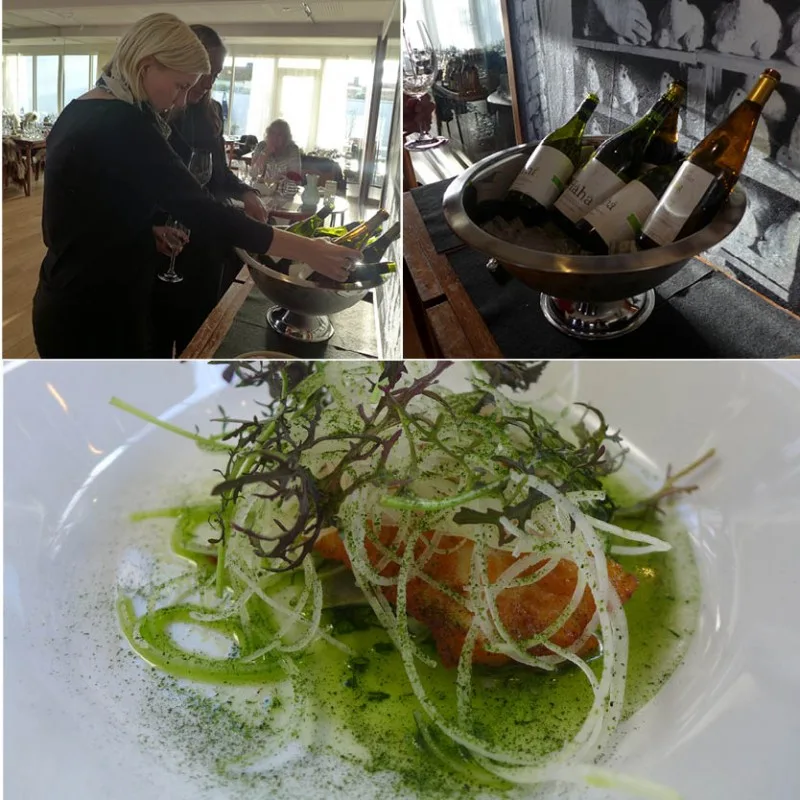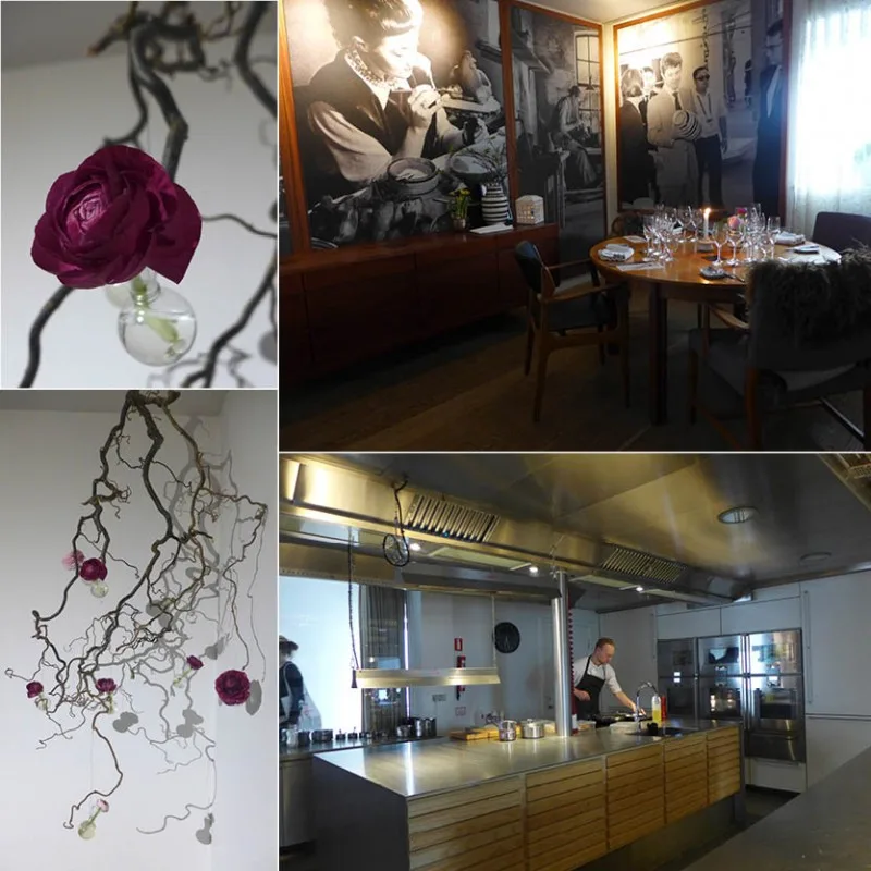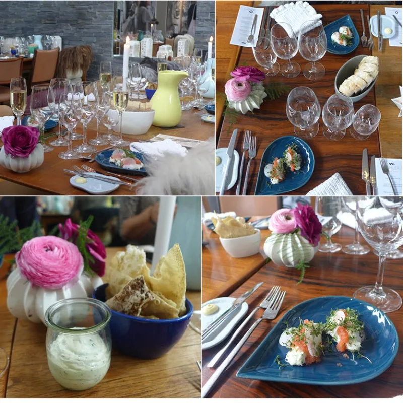 Det spilles rolig musikk fra et stereoanlegg i hjørnet på Kähler Villa Dining. Atmosfæren er avslappet og herlig. Bordet er dekket til fest når vi kommer. Det er ikke sterilt og minimalistisk. Det er kos! Bordet er selvsagt dekket med Kählers egne produkter, som du også kan kjøpe i butikken i resepsjonen. Kan være litt skummelt etter at man har forsynt seg rikelig av vinbuffeten, men dette må man bare styre etter egen beste evne. Restauranten finner du også i White Guide over de beste restaurantene i Norden.