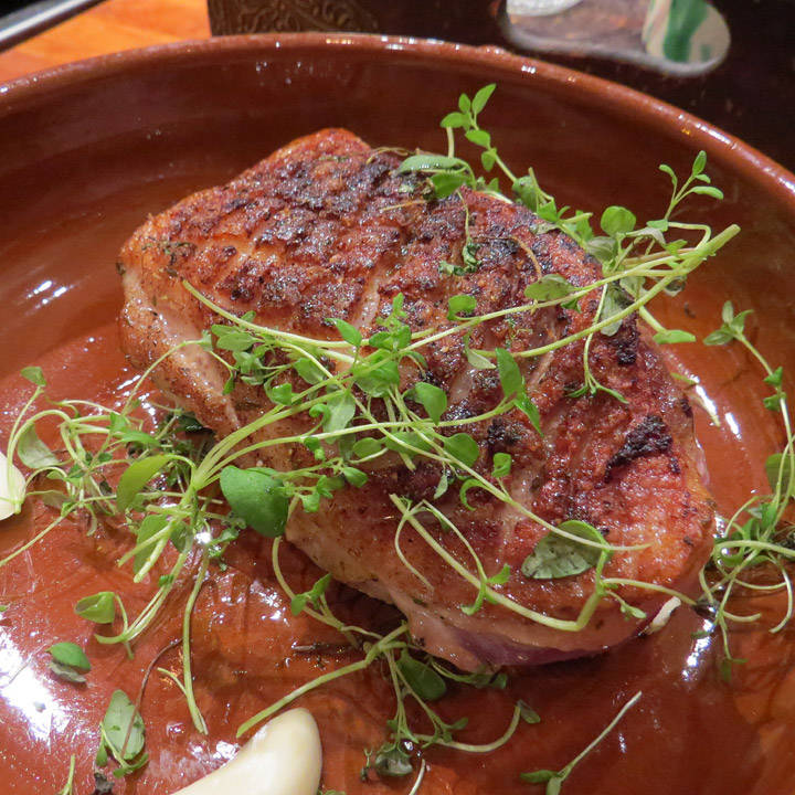 Stek andebrystet på den andre siden også og legg det i en ildfast form ammen hvitløksfedd og urter (timian er topp). Etterstek brystet til ønsket konsistens. Jeg liker det rosa, men ikke rått , så når midten av brystet kjennes ut som partiet mellom tommel og pekefinger når du spenner neven (skjønte du hva jeg prøvde å si? Vanskelig å forklare, egentlig), ja da er brystet perfekt stekt.