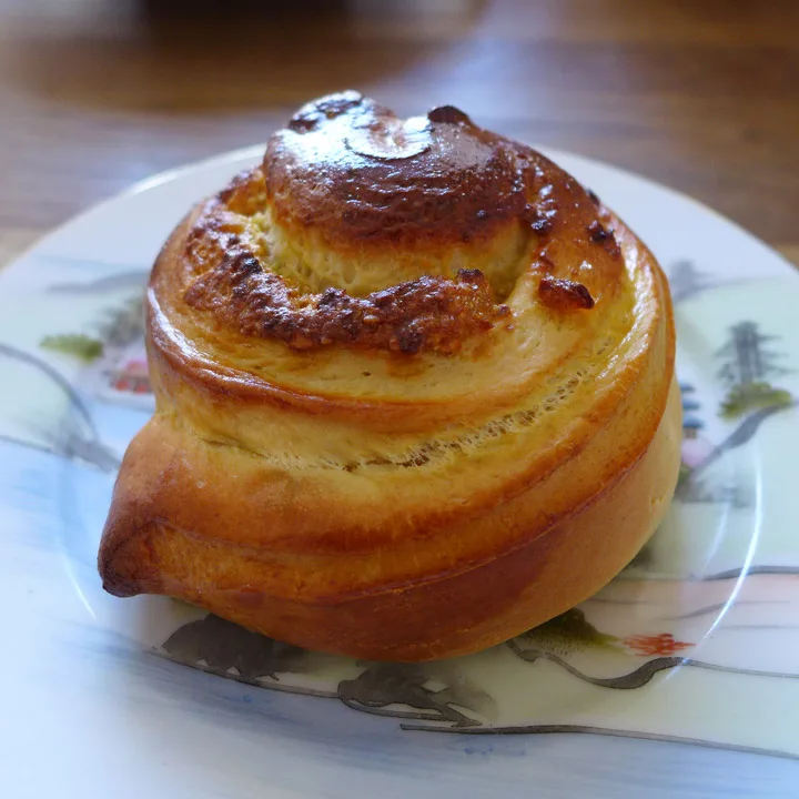 2 egg piskes til eggedosis sammen 150 g sukker. Spe med smørmelken. Tilsett 1 ts salt, 1 ts kardemomme og 1 kg mel (det kan være du trenger litt mer). Elt dette i 10 minutter i en kjøkkenmaskin eller for hånd.