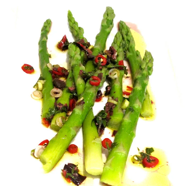 Asparges er genialt følge til røkelaks, spekeskinke, i salat eller dynket i en deilig hollandaisesaus. Dette er ganske tradisjonelt. Men har du noen gang prøvd nykokte asparges med urtevinaigrette?