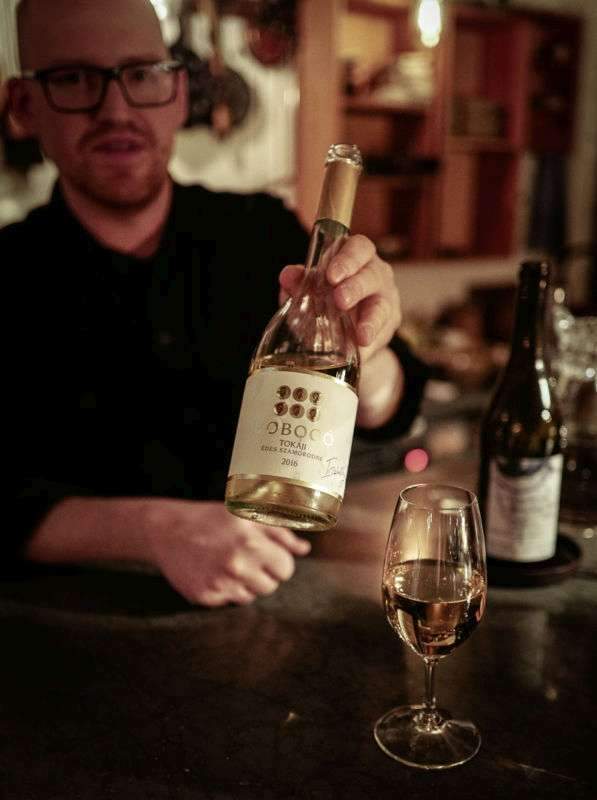 En av dessertene de serverer heter «falne pærer» og dette er nedfallsfrukt som gjerne ligger igjen på bakken og råtner. Petter serverer dem i restauranten. Du får kun økologisk vin eller naturvin.