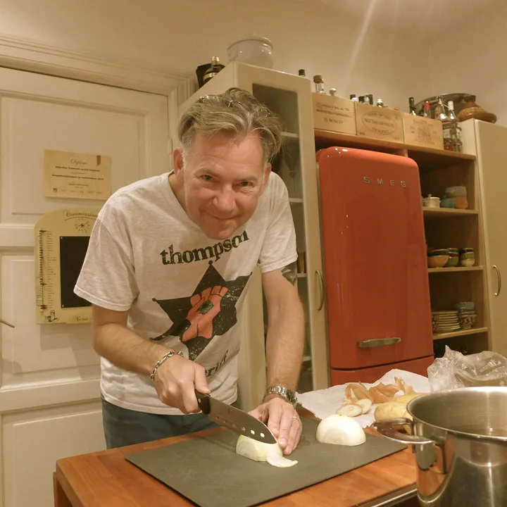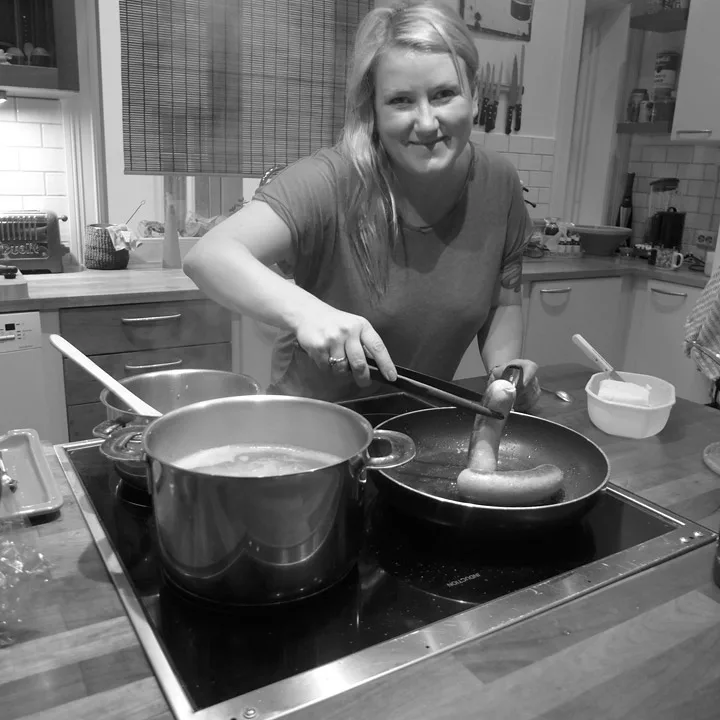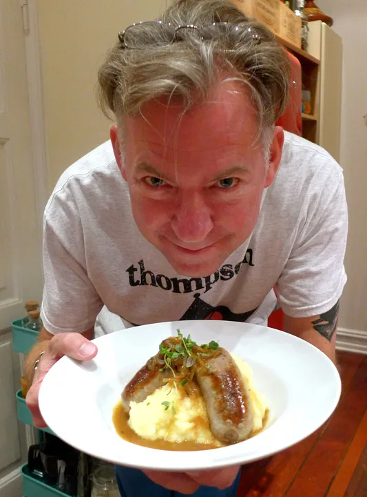 Herr og fru Valebrokk lager mat sammen. Vi har slurvet litt i det siste, men nå er vi på banen igjen. Dette er en serie på HellesKitchen der jeg og mannen min lager mat sammen. Det høres sikkert idyllisk ut, men det har sine utfordringer. Jeg er vant til å lage mat alene, og irriterer meg over at ting ikke blir slik jeg har sett det for meg. Erik er mer nybegynner og synes det er morsomt å lære, men han liker ikke å bli kjeftet på. Naturlig nok. Derfor møtes vi på bar bakke og lager ting vi ikke har laget før. Vi valgte en klassisk engelsk rett: Bangers and mash. Det er rett og slett pølser med potetstappe og løksaus. Det kan være en aldeles forferdelig rett hvis du får den servert på en sliten pub hvor maten er varmet i mikroovn, eller den kan være nydelig og sofistikert, slik vi har laget den: Med kjøttfulle kvalitetspølser og silkemyk potetstappe. Det er ingen problem å få tak i gode pølser lenger. I Oslo har vi Strøm Larsen på Torshov, Annie’s pølsemakeri i Mathallen, men også kvalitetspølser i større matbutikker fra Jens Eide, Grøstad gris, Jacobs utvalgte eller Arne Brimi. Vi kjøpte kalvepølse med urter på Bondens Marked.