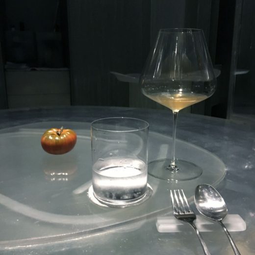Maten har vært en reise i fantastiske smaker og presentasjoner. Men vi skal videre til neste Enigma. Vi blir ført inn i selve spiserommet der alle er innom i løpet av kvelden. Det er dekket opp på hvert bord med servietter og bestikk. På midten ligger en tofarget tomat. Det er det.