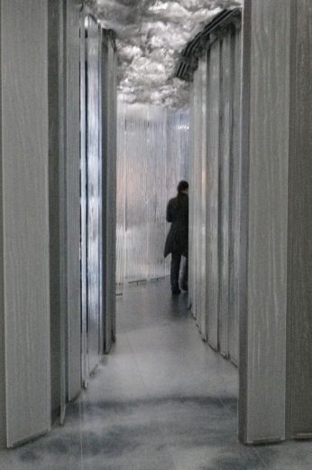 Tissepause må til og vi blir ført ut til en smal gang med usynlige dører. Musikken er høyere her inne og litt marimbaaktig.