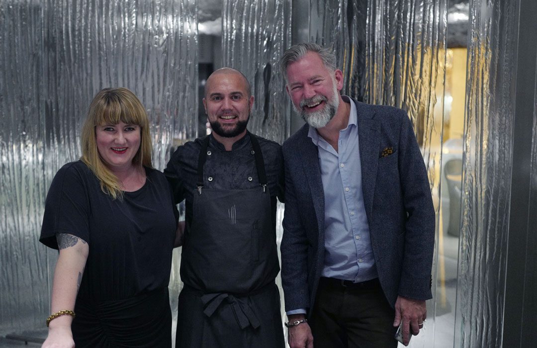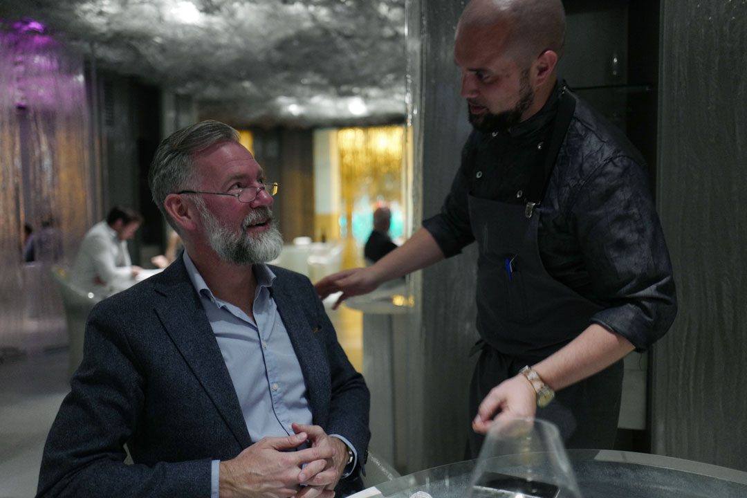 Vi skal videre og bli ført inn i selve hjertet av Enigma – kjøkkenet. Her står kjøkkensjef Oliver Peña og selveste Albert Adrià og ønsker oss velkommen. De takker oss for at vi har kommet helt fra Norge. Det føles litt uvirkelig at en av verdens aller beste kokker står her og takker oss. Det er vi som er takknemlige.