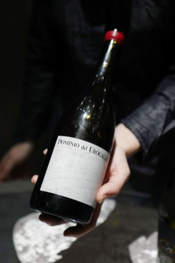 Enigma tilbyr to vinpakker, men vi vil ha en god flaske vin som går til hele måltidet. Sommelieren hjelper oss å finne en fabelaktig spansk oransjevin som vil passe til det vi har i vente.