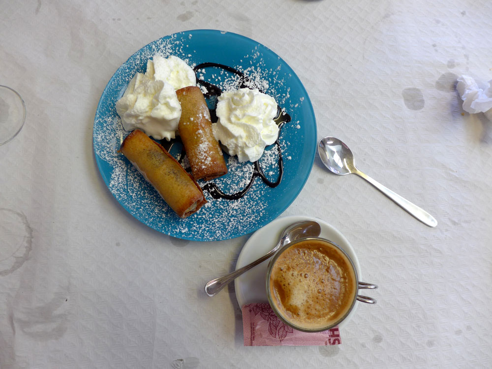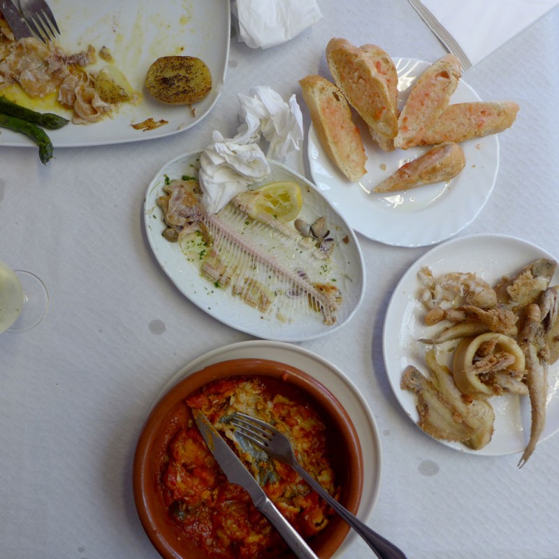 Risrettene får vi altså ta neste gang, for vi skal definitivt tilbake. I stedet for bestiller vi en porsjon telliner (supersmå og utrolig smaksrike skjell), fritert småfisk, helstekt lenguado (flyndre) og husets bacalao laget med herlig klippfisk og katalansk samfaina (en slags ratatouille).