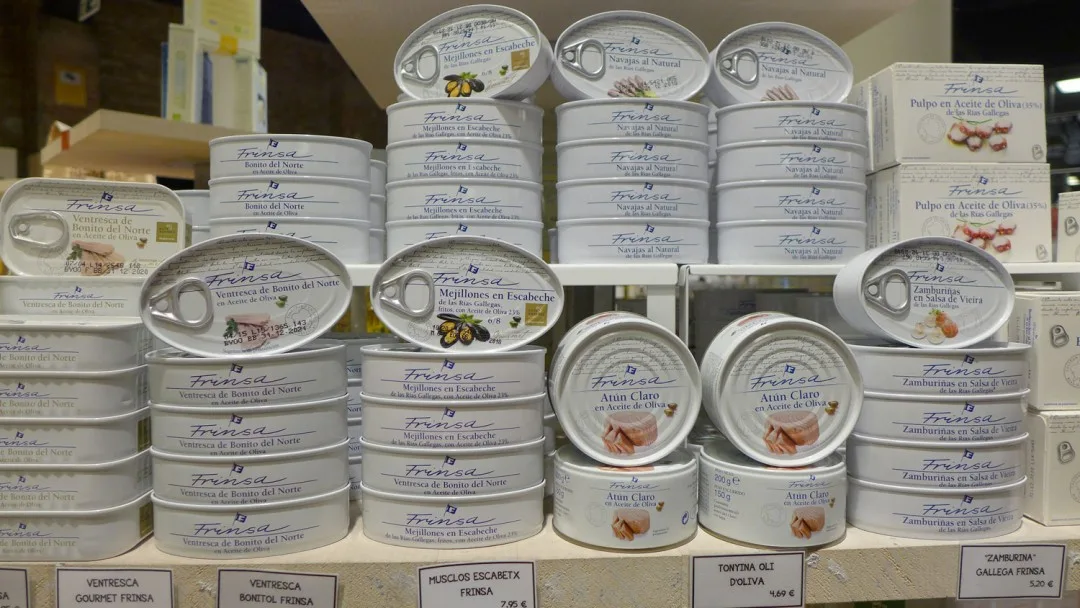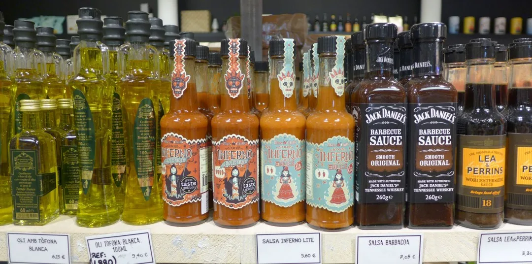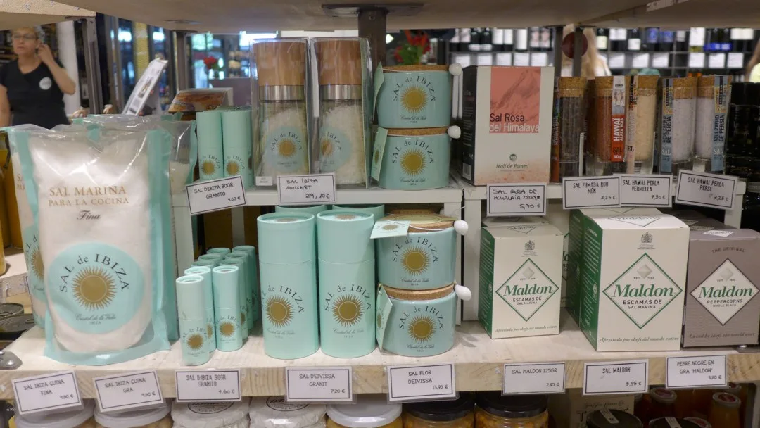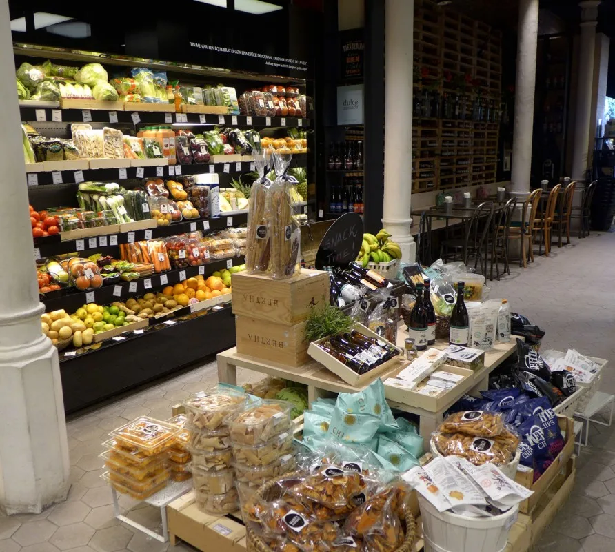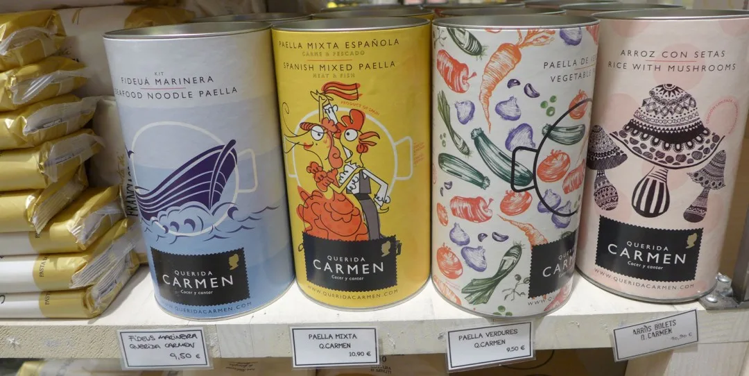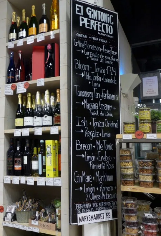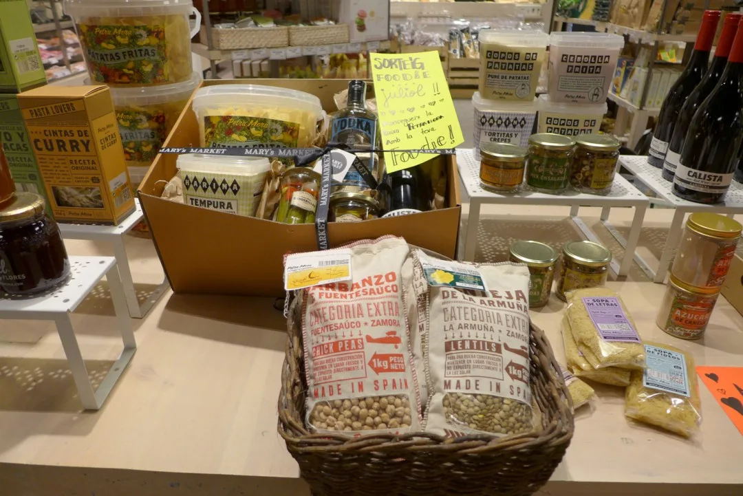Et sted jeg vil trekke frem er Mary’s Market. Det ligger inne i et kjøpesenter langt oppe på Passeig de Gràcia. Senteret heter Bulevar Rosa og har en rar samling butikker. Noen veldig fine, andre ikke så fine. Men innerst inne i senteret ligger Mary’s Market – en fantastisk matbutikk. Her får du skinker, oster, vin, ginutstyr, salt, oljer osv. Nedenfor kan du se en bildeekstra fra butikken, og da skjønner du nok hvorfor jeg anbefaler stedet til deg.