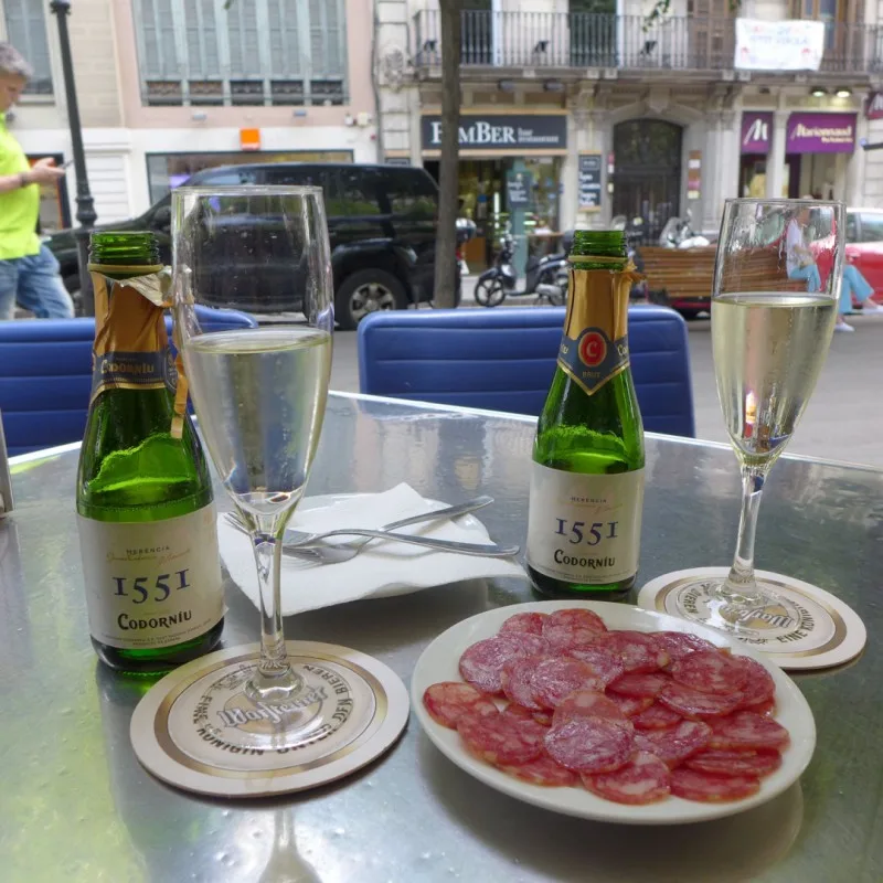 Når du har handlet ferdig bør du gå ut av senteret, men den andre enden. Da kommer du ut på den flotte Rambla de Catalunya. Her ligger det mange koselige barer som har utebord. Bestill et glass cava eller en Benjamin (liten flaske med cava) og en liten porsjon med fuet (katalansk spekepølse). Dette ritualet har jeg hver gang jeg er i Barcelona.