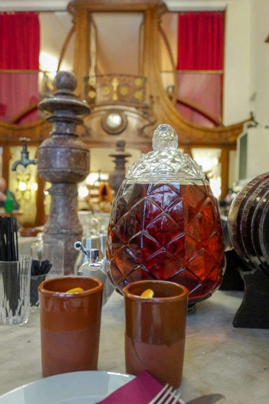 Bestiller du vil får du karaffel som er tappet fra vintønnene over baren. Vinene er faktisk veldig ok. Avkjølt (både den hvite og røde) og billig.