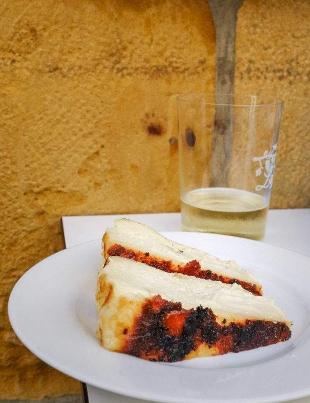 Det er magisk! Fyllet smaker som en blanding av karamellpudding og den beste, kremete ostekaken du kan tenke deg. På La Viña får man to smale stykker – perfekt å dele (hvis du klarer det). Man drikker den lokale, perlende hvitvinen Txakoli til og man spiser gjerne denne kaken som siste stopp på pintxos-runden sent på kvelden/natten. Altså helt andre tider enn når vi tenker på kake.