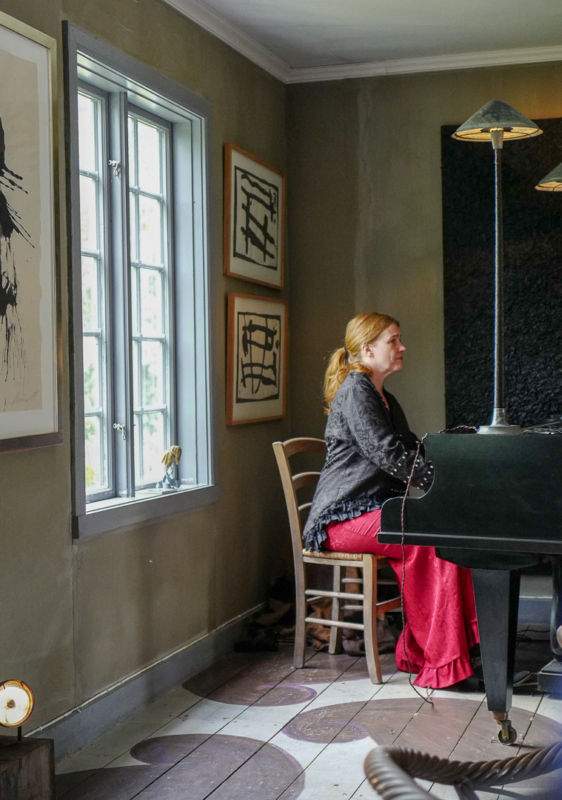 – Vi skal ha en minikonsert, sier han. Selvsagt skal vi det. Vi er tross alt på en herregård. Det er norske Kristine Bratlie som setter seg bak klaveret og serverer de vakreste toner.