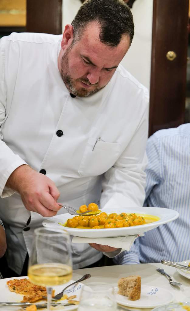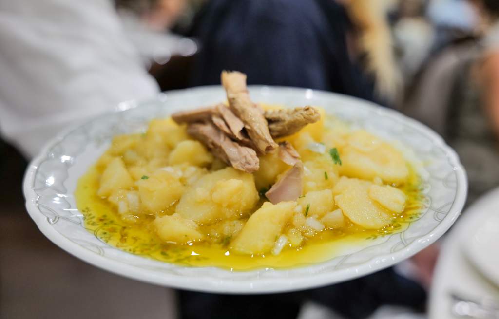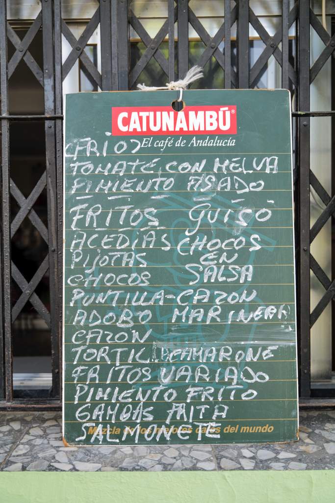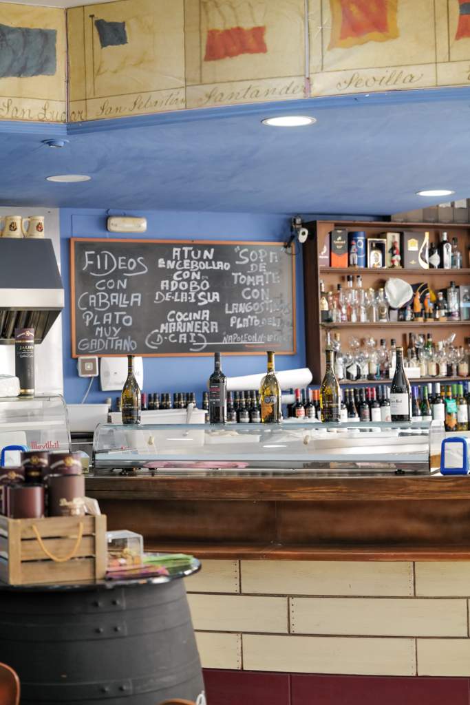 Den tradisjonelle restauranten har masse godt på menyen. Patatas aliñas (kald potetsalat med løk, persille, sherryeddik, salt og olivenolje) med melva (en type makrell som er i familie med bonito) servert på toppen av potetene, lokale oster med fiken, mousse av skorpionfisk og miniboller laget av sjømat i en saus av sherry og skjell. Og dette er bare forrettene.