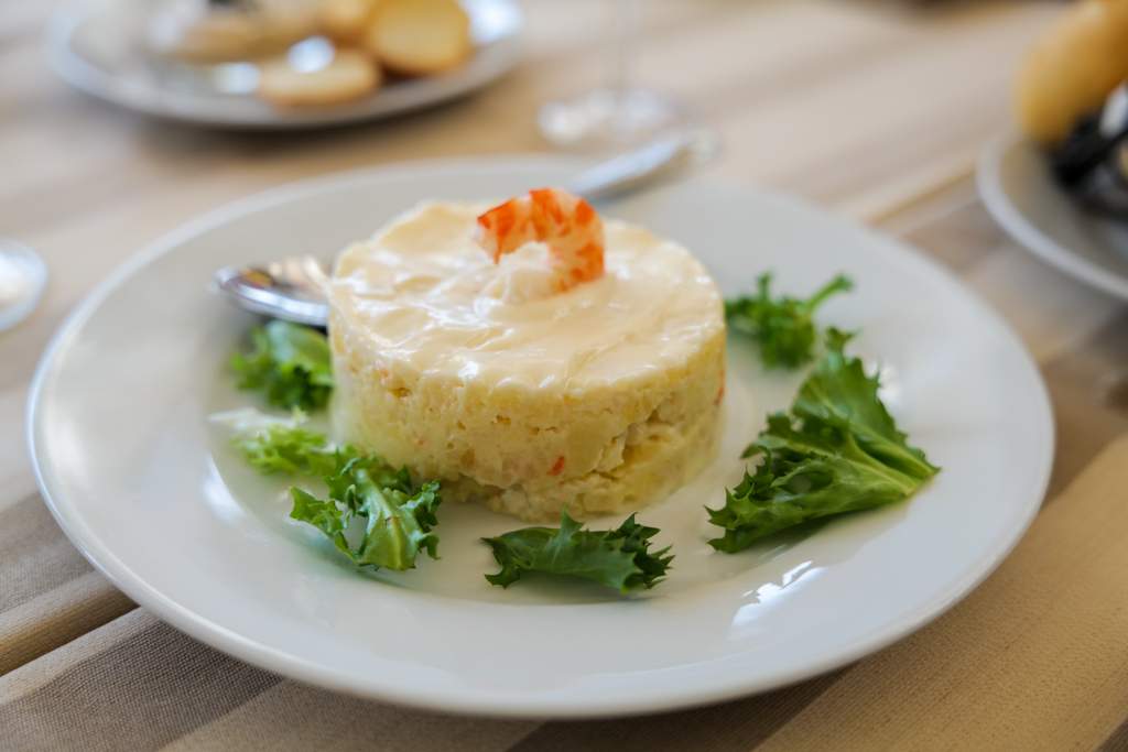 Vi spiste på Mirador de Doñana. De serverer nydelige retter som for eksempel deres versjon av Ensalada rusa med majones, poteter, reker.