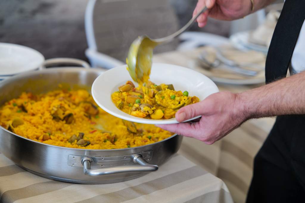 Vi spiser Arroz Marinero, som er en slags paella, men fuktigere. Man kan ikke kalle en risrett for paella hvis den ikke er en autentisk variant fra Valencia. Risretten er helt nydelig! Masse skalldyr og kremet ris.