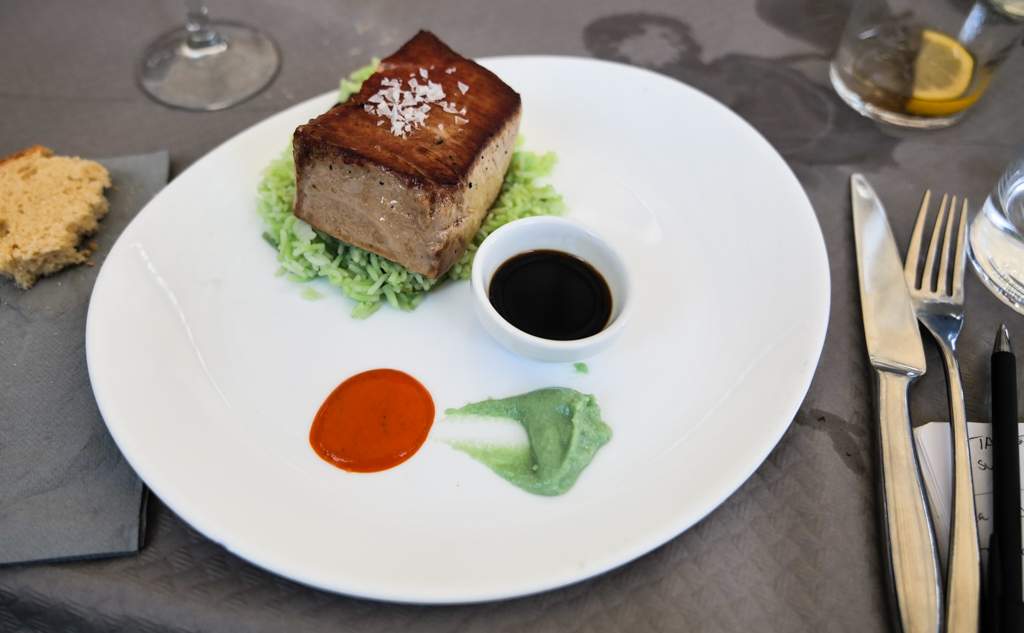 På flere av byens mange restauranter kan man nyte den røde tunfisken og i mitt tilfelle ble det på La Pescadería der de serverer en utsøkt tataki av rød tunfisk med wasabiris.