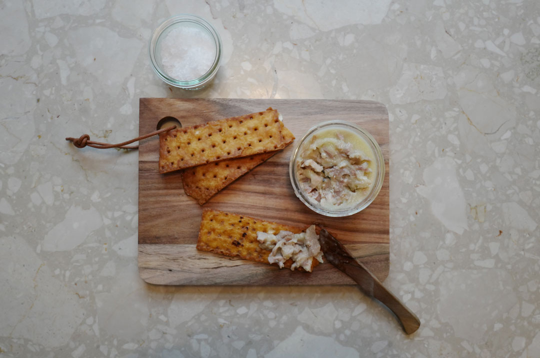 Jeg har confitert kyllinglår i andefett og laget rillette av kjøttet. Hva er rilette? Det er confitert kjøtt som er laget til et smørbart pålegg. Jeg har tidligere laget det av gås, men også svineribbe. Det smaker helt fantastisk og er det perfekte pålegget på julebordet.
