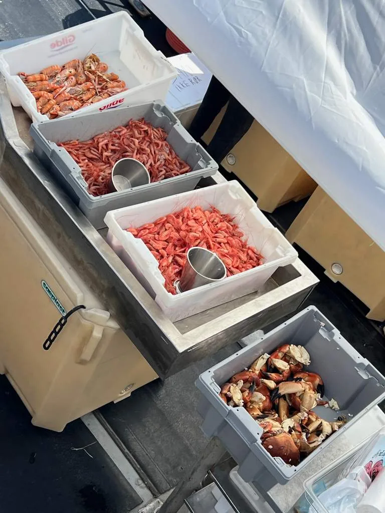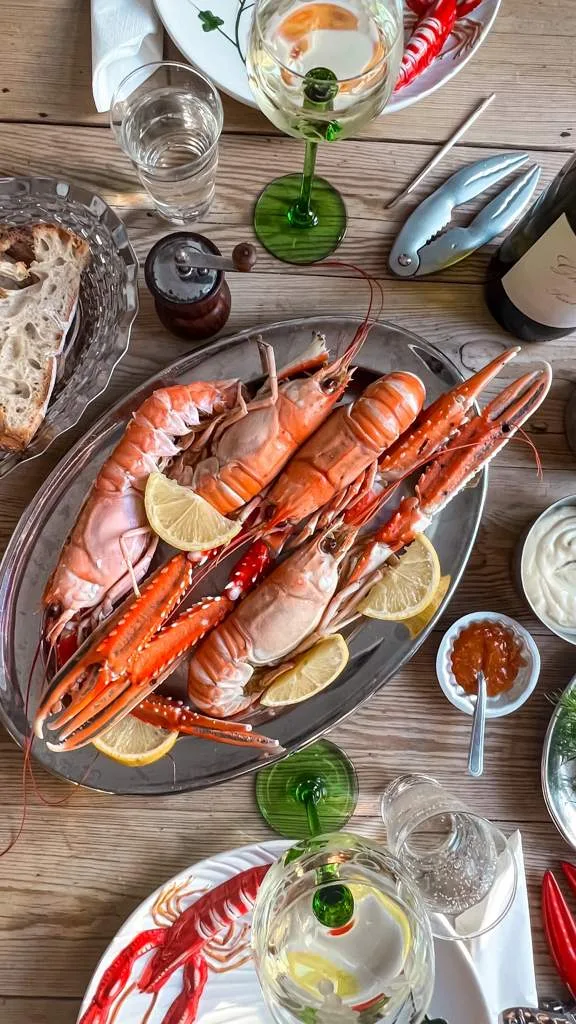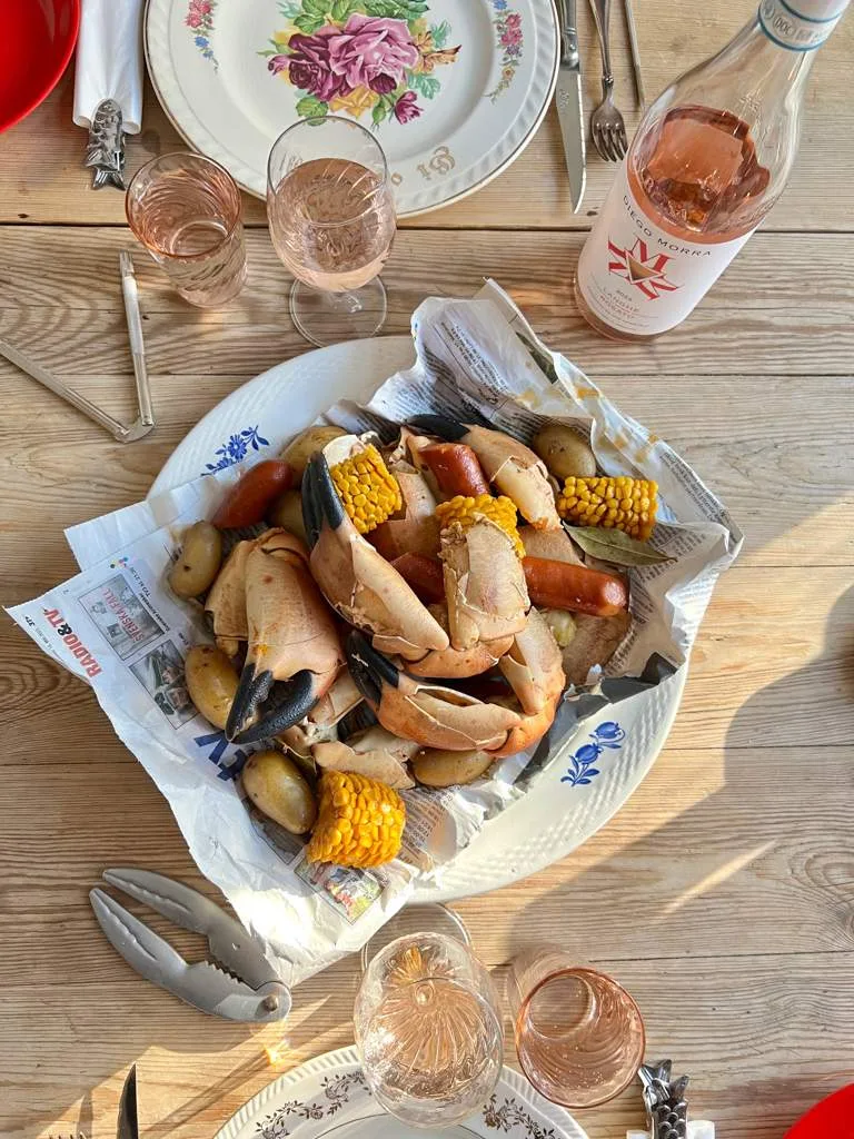 Jeg lagde to retter av fangsten vår: Cajun Crab Boil og sjøkreps naturell med cognac/safran-majones.