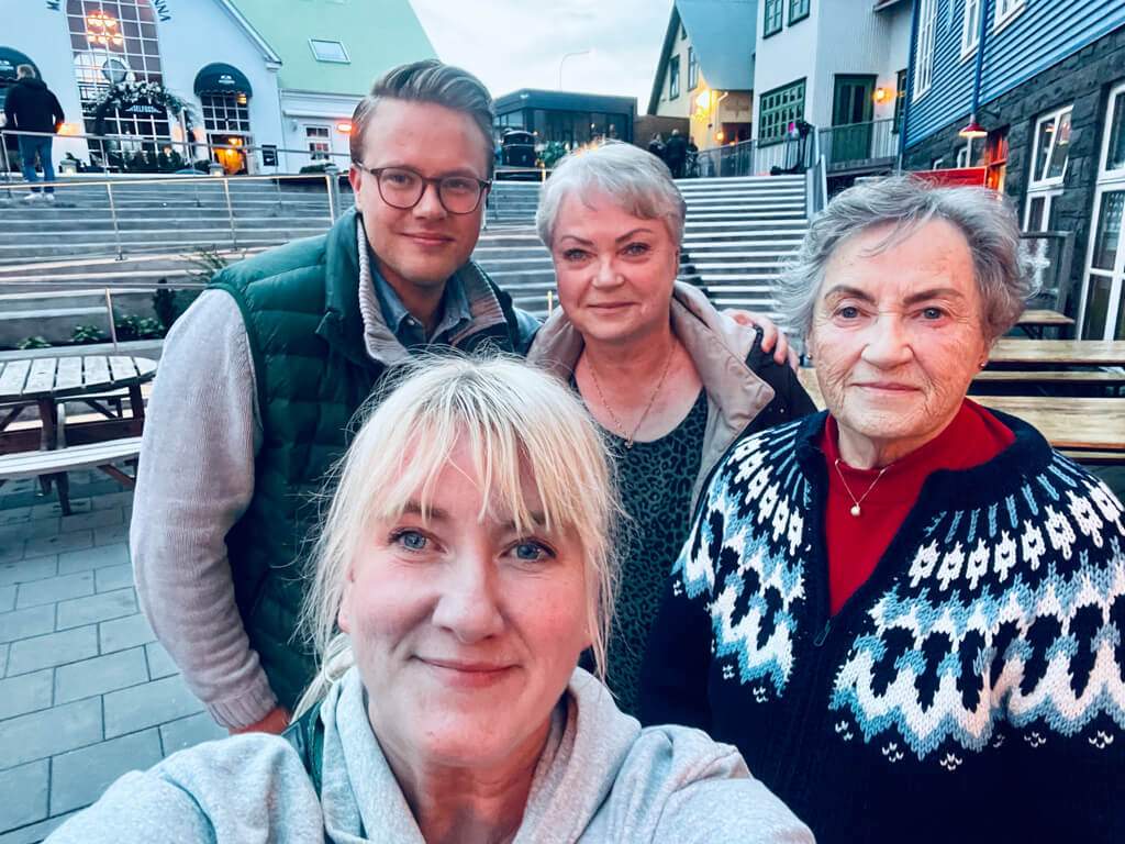 Tante Tove, fetter Olì og kusine Karen tok i mot meg med åpne armer. Det ble tur i småfly med Olí til Vestmannaøyene. Vi skulle egentlig lande for å drikke kaffe i Vik, men vi måtte snu rett før pga dårlig vær og så dro vi ut i havet og landet på øyene i stedet for. For en opplevelse!