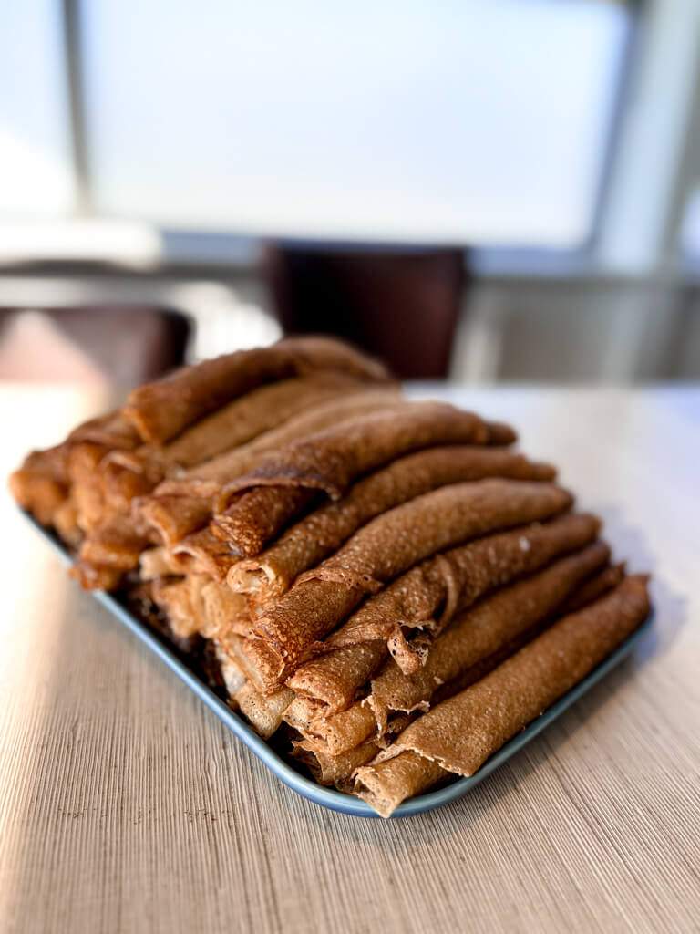 Islandske pannekaker. Tynne pannekaker rullet med sukker.