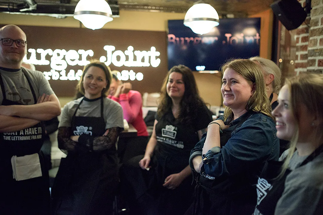 Konkurransen foregikk, som tidligere nevnt, på Burger Joints trange kjøkken og vi fikk en time på oss til å levere vår burger. De flinke kokkene på Burger Joint hjalp oss å fritere, steke og bringe oss det vi eventuelt trengte.