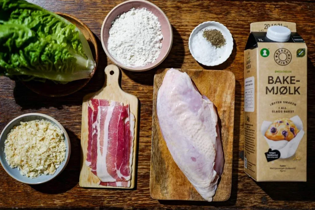 Dressingen, som er en ganske klassisk cæsardressing inneholder også Bakemjølk.