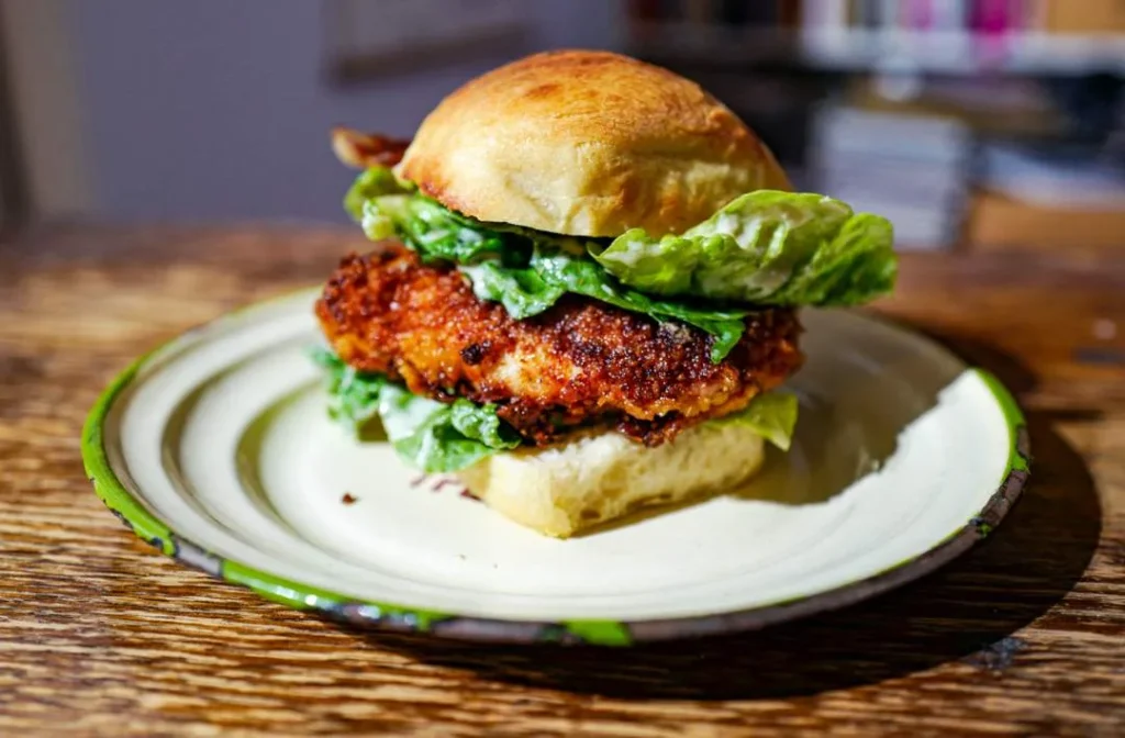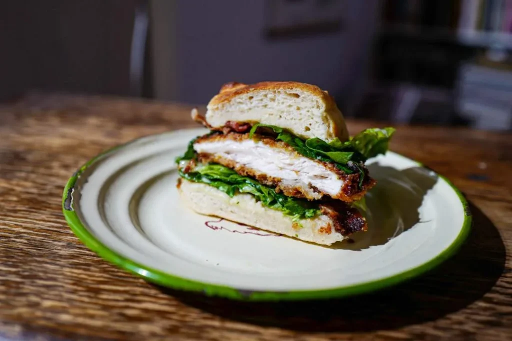 Bakemjølk (buttermilk eller kjernemjølk) hever smaken i alt fra bakst til panering til sauser og dressinger, og det er det jeg har gjort i denne oppskriften der jeg har brukt Bakemjølk på tre forskjellige måter: I burgerbrødene, i dressingen og til den panerte kyllingen.
