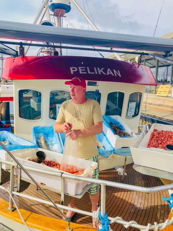 Jeg følger en gruppe på Facebook som drives av fiskebåtene og der melder de kvelden før hva de kommer med av fisk og skalldyr. Fra klokken 07:00 (noen dager i uka) legger de til kaia nedenfor Rådhuset og der blir de til de har solgt ut varene.
