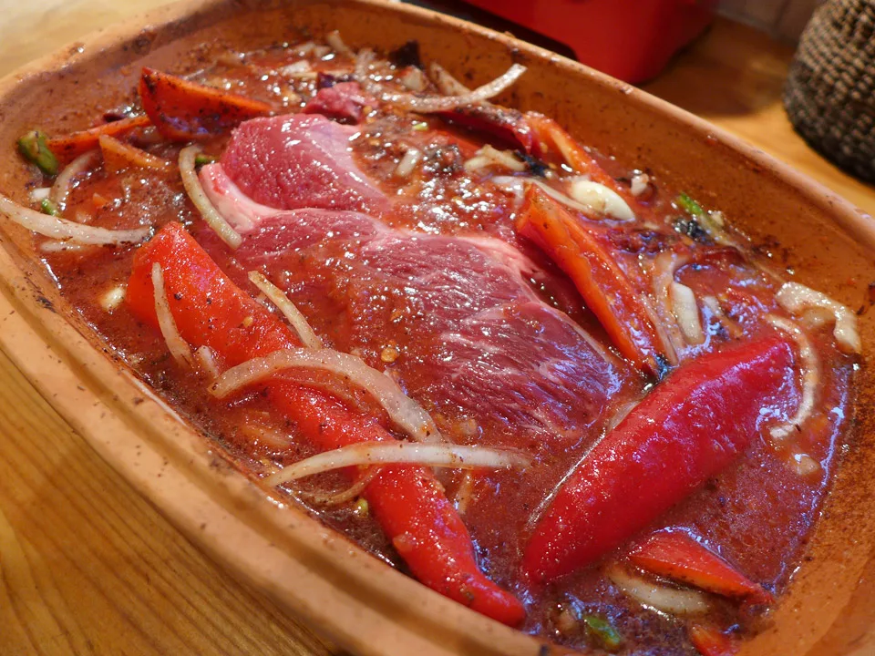 Chili con carne betyr jo chili med kjøtt, og da måtte det bli sånn: Mange chilityper og et stort stykke høyrygg av okse.