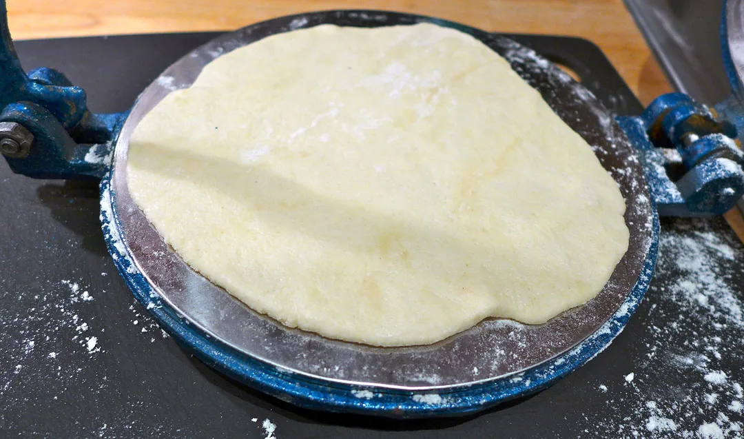 Jeg lagde tortillaene med hvetemel, maismel, litt olje, litt salt og vann. Jeg lot deigen stå og samle seg 1 time før jeg presset flate tortillaer (du kan bruke kjevle) og stekte dem i en tørr panne på høy temperatur.