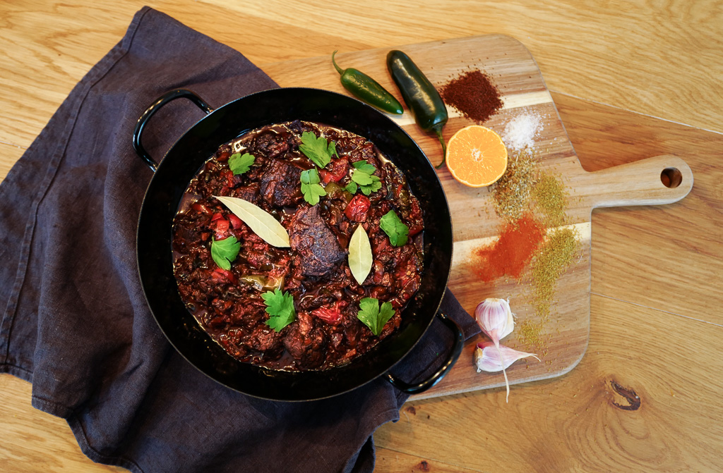 Kjøttet jeg bruker er høyrygg av storfe. Det må varmebehandles lenge for at det skal bli mørt. Det er helt fantastisk og du vil ikke angre på at du brukte litt tid på gryta. Det er ikke bare kjøttet som trenger tid. Alle ingrediensene trenger masse tid til å binde smakene og lage den helheten vi er ute etter i denne retten. Chili con carne er ikke fast food. Det er ekte slow food og comfort food.